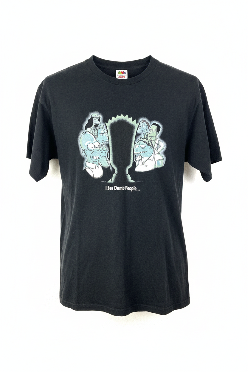 This classic vintage T-shirt features the iconic "I See Dumb People" Bart Simpson from 2001! Perfect for looking smart and stylish while showing off your classic Simpson's knowledge. It's an XL size, so you'll have plenty of room to make a statement.